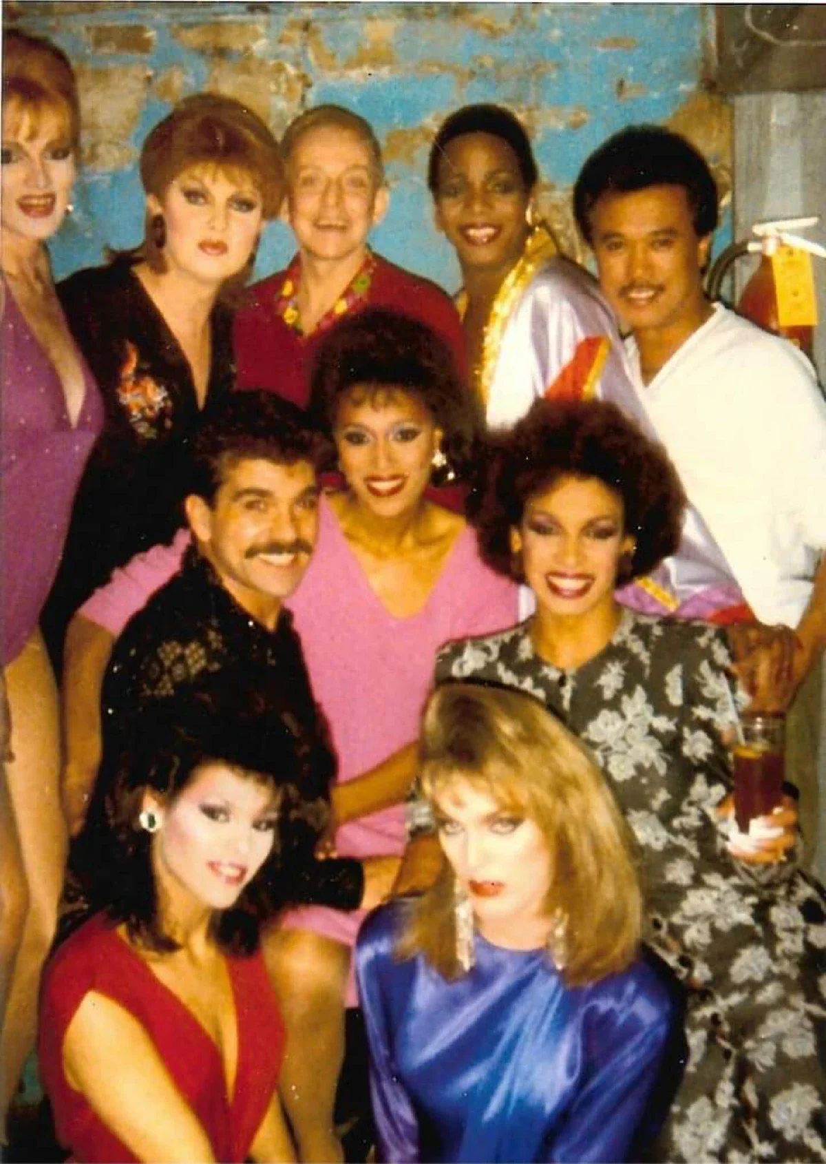 Showtime at the Baton. Dana Douglas, Chilli Pepper, Charles Pierce, Leslie ReJennae, Orlando Del Sol, Ray West, Sheri Payne, Alana Kela, Shante (Alexandra Billings) and Kelly Lauren. (Courtesy of Baton Show Lounge)