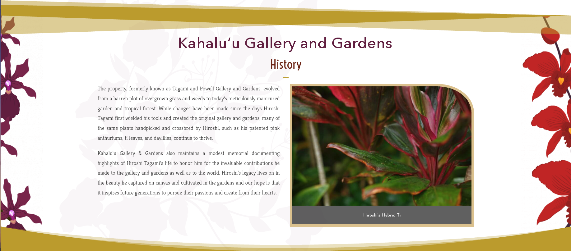 Nestled in the heart of Kahaluʻu on Oʻahu’s windward side is a sprawling estate of lush botanicals housing several Japanese-inspired galleries filled with art. The property was originally an empty plot of land purchased by celebrated oil painter Hiroshi Tagami (1928-2014), who grew up in Wahiawa and was recognized at a young age by an auctioneer who appreciated the oil paintings he displayed on the Honolulu Zoo fence.