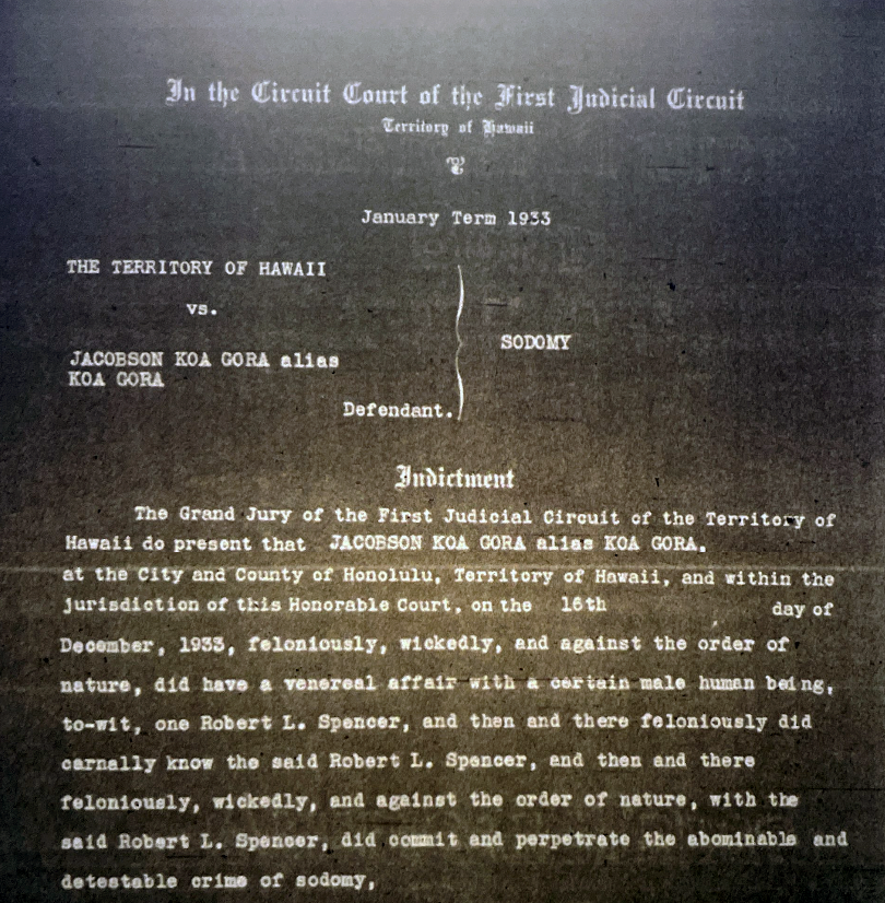 Koa Gora was not a gay rights activist in the contemporary sense. He was simply a man demanding a fair trial who wasn’t afraid to publicly challenge the legal system to get it. Although he was unsuccessful in changing the law or its interpretation—a fight that would not conclude until the revision of the Hawaiʻi penal code in 1973—he did make an important contribution: a clear, on-the-record, challenge to a legal and political system that criminalized and brutally punished same-sex desire and relations. It was a rare public refutation in an otherwise compliant social landscape.