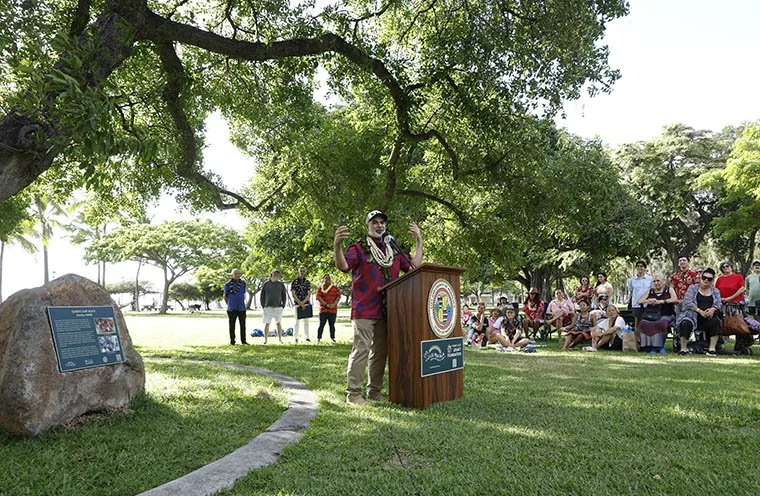 Honolulu Mayor Rick Blangiardi speaks during the dedication ceremony.